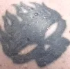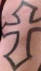 | Distinguishing marks en | White male. Black hair, brown eyes. Richards wears black-framed eyeglasses. He has a tattoo of a large cross in black outline on his upper left arm, a tattoo of a black flaming skull on his upper right arm, and a tattoo of letters including "H", "A" and "E" on his upper back. Photos of the first two tattoos are posted with this case summary. Richards's nickname is Rusty. |