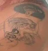 | Distinguishing marks en | Tattoo on back of shoulder, tattoo of nude angel with a sword on ankle |